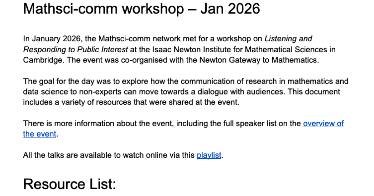 Resources Arising from the Mathsci-Comm workshop, Jan 2026